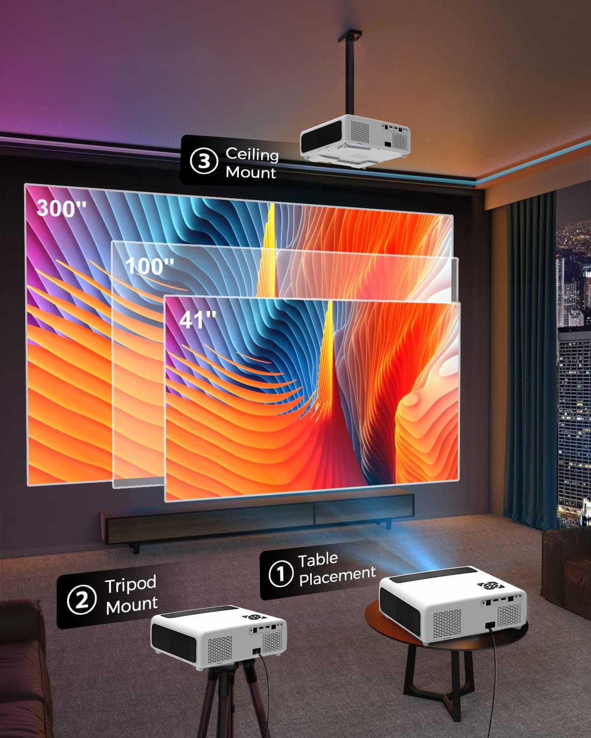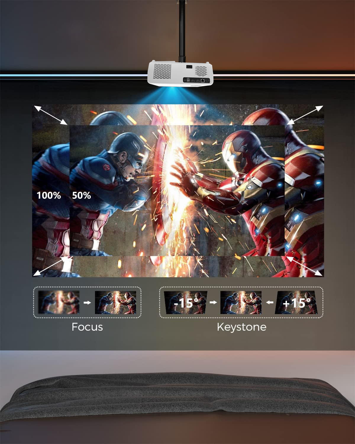 LED-projektor WiFi Android TV FULL HD 4K 24000lm 800 ansi Autofokus